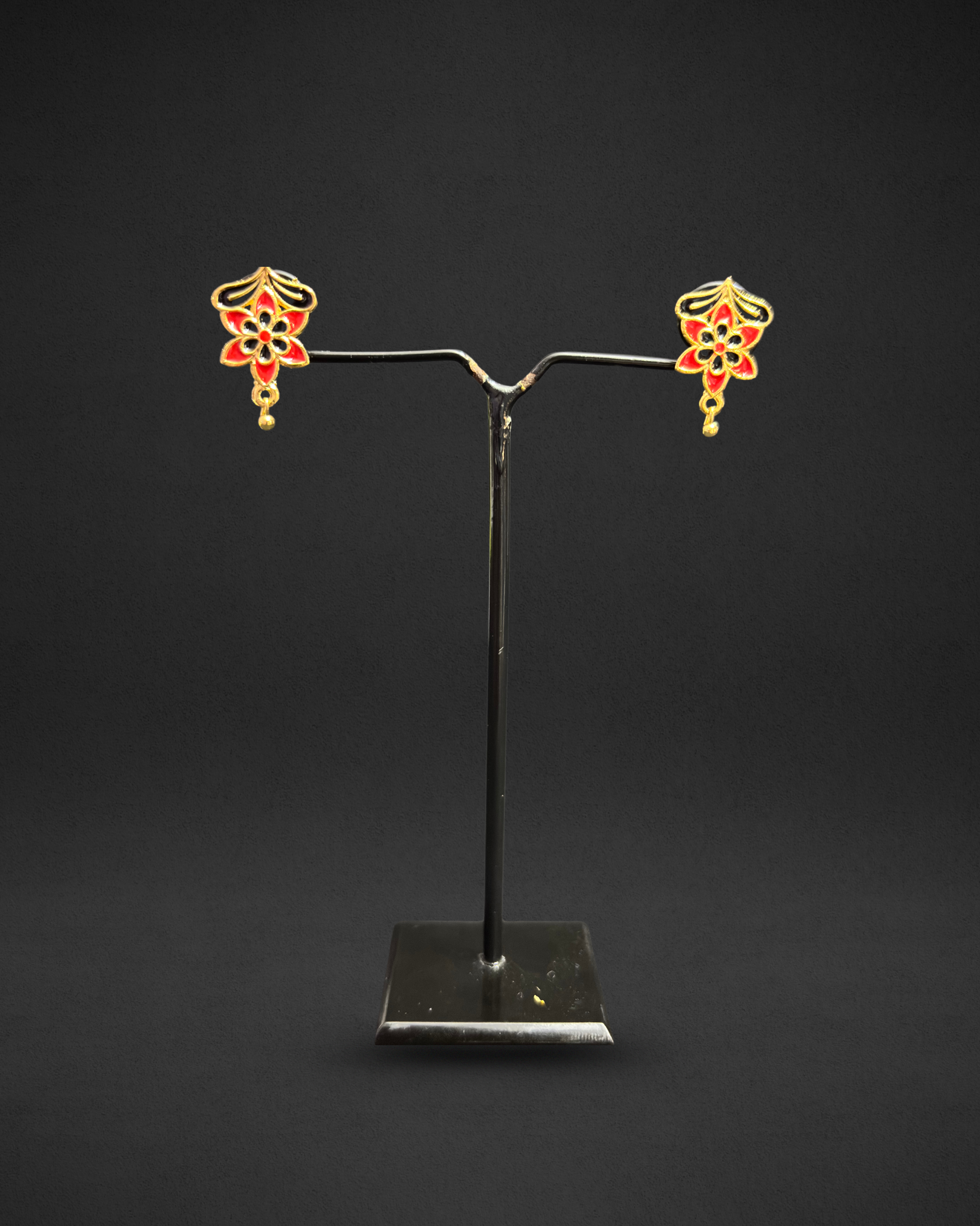 - Handcrafted with red and black enamel work and gold accents