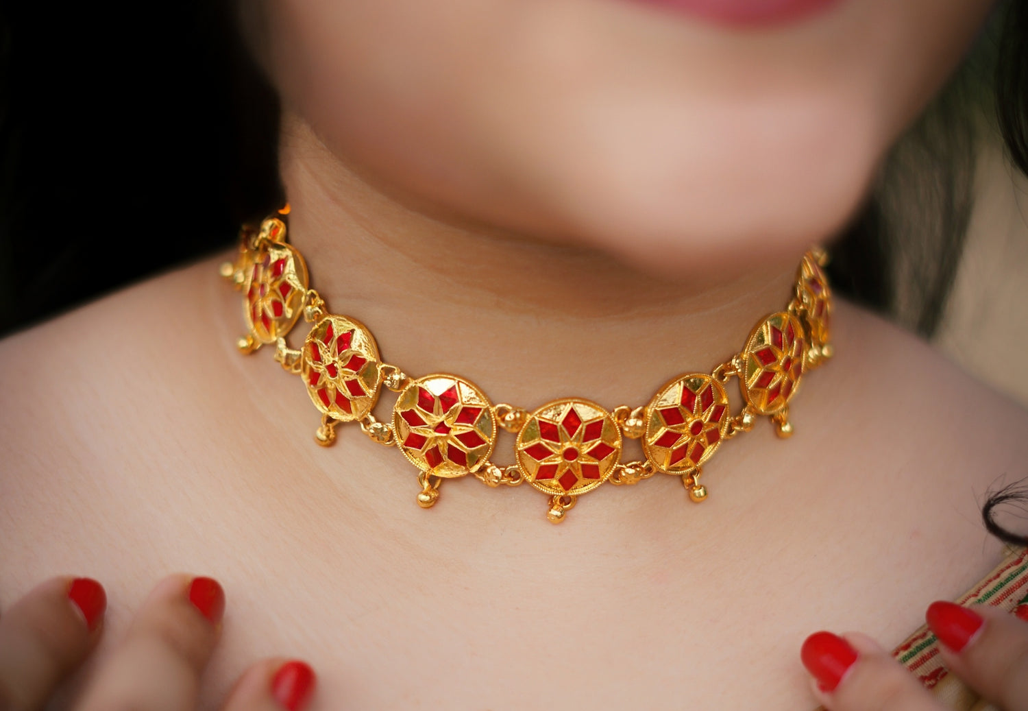 Traditional Assamese Gold-Plated Golpata Necklace Set
